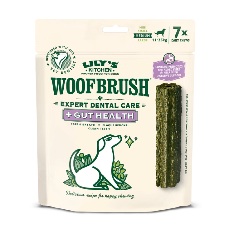 우프브러시는 색다른 구강 관리용 이빨간식입니다. 뛰어난 스폰지 질감 덕분에 우프브러시를 씹으면 잇몸선까지 도달하여 플라크(치태)를 닦아냅니다. 게다가 모두 천연 성분으로 만들어졌습니다. 우리는 모든 반려동물이 최적의 음식을 먹을 권리가 있다고 믿는데, 구강 관리용 간식에도 똑같이 적용되어야 합니다. 개들은 칫솔과 치약을 모두 먹는 셈이어서 치아 뿐만 아니라 위장에도 유익한 재료를 사용해야 합니다. 우프브러시는 확실하게 치아를 닦을 수 있도록 하기 위해 반려견 치과 전문가의 도움을 받아 정교하게 공을 들여 만들어졌으며 파슬리, 코코넛 오일, 회향과 같은 최고 등급의 천연 성분만을 사용하였습니다. 게다가 우프브러시는 맛도 뛰어나서 반려견들이 너무 좋아합니다. 다양한 기호성 테스트로부터 포장을 뜯을 때 반려견들의 반응을 통하여 우프브러시를 씹는 것은 이를 닦는 귀찮은 잡무가 아니라 맛있는 간식으로 인식되었습니다. 여러분의 반려견의 치아 건강을 돕기 위해 하루에 한 개씩 급여를 권장합니다. 생후 6개월령부터 급여하는 것이 적합합니다.